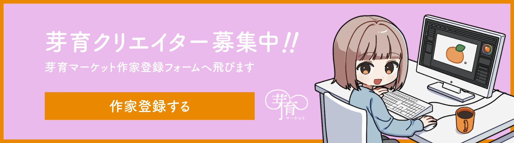 障がい者の方がクリエイティブな制作活動を通して社会との関わりと貢献を実感したり、さらに実績や経験を積むことで1人のクリエイターとして次のステージへ踏み出すサポートをしていきます。そんな芽育マーケットへクリエイターへの登録はこちらからお願いします。